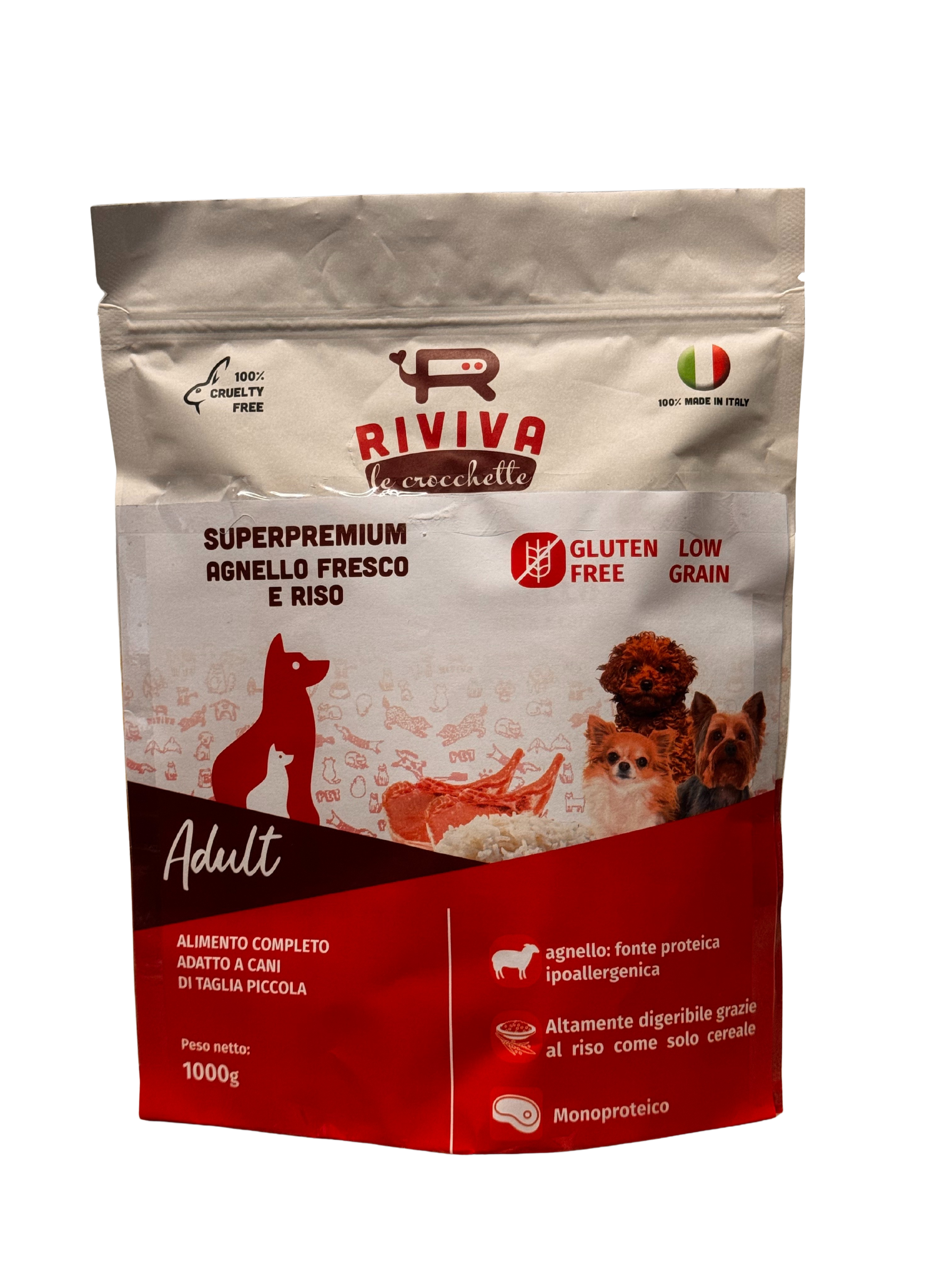 Le Superpremium mini di RIVIVA con la carne di agnello fresco sono un alimento completo per cani adulti; la forma è minuscola e la rende adatta ai cani con difficoltà di masticazione o di taglia piaccola; la presenza sia di agnello disidratato che fresco ne costituisce l’unica fonte proteico-lipidica ed è ricca di vitamine e minerali come ferro, zinco e vitamine del gruppo B; il riso è il solo cereale utilizzato ed è altamente digeribile e senza glutine. La polpa di barbabietola permette la depurazione del corpo dalle tossine, facilità l’attività epatica, riduce gli odori di feci e svolge un’azione depurativa garantendo l’equilibrio della flora batterica intestinale e di supporto alla digestione. Senza coloranti e conservanti aggiunti.